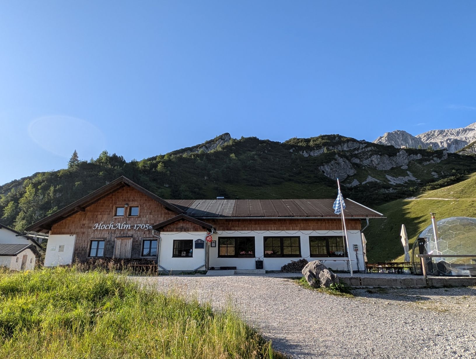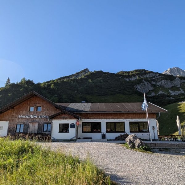 Es ist nun nicht mehr weit. Weiter fast geradeaus geht es auf die schon oberhalb sichtbare Hochalm (1.705 m) zu, die nach leichtem Höhenverlust in einer letzten steilen Auffahrt erreicht wird. Nach über 15 Km ist das Bike-Depot erreicht.