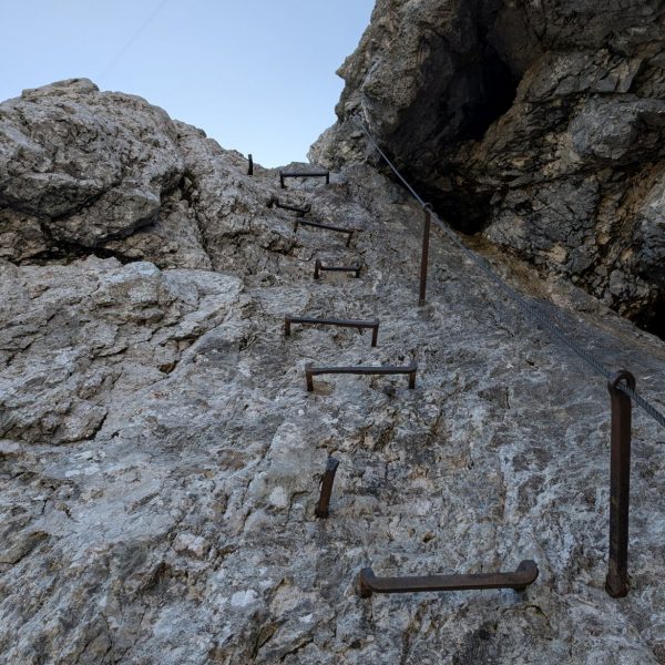 Zwar steht sie als „kleine Schwester“ im Schatten der Zugspitze, doch auch die Alpspitze muss sich als vielleicht formschönster Berg im Wetterstein nicht verstecken und bietet eine ähnliche Zahl an Zustiegen von allen Seiten. Die meisten nutzen natürlich die Seilbahn zum Osterfelderkopf und wählen im Aufstieg die überversicherte „Alpspitz-Ferrata“.