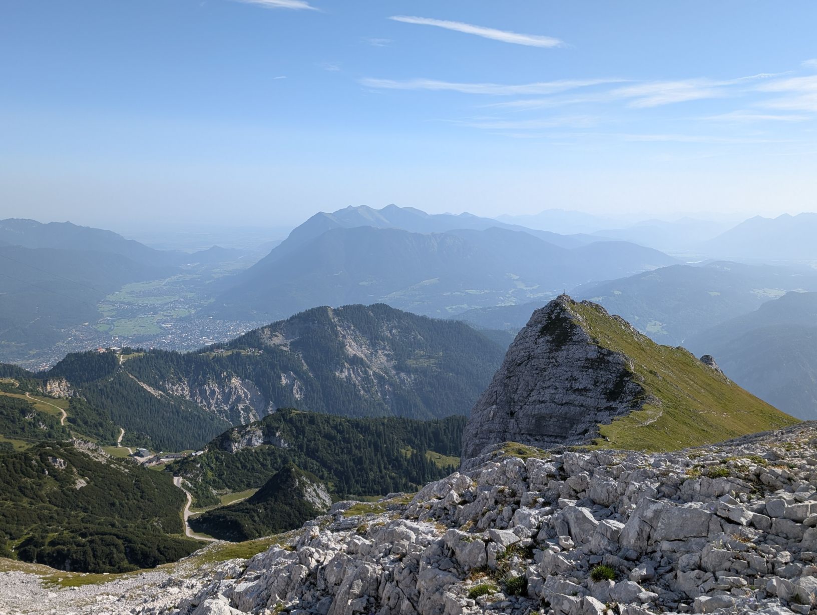 Eine gewaltige Tagestour auf einen beeindruckenden Berg, die zwar nicht mit Einsamkeit glänzt, aber viel Abwechslung und grandiose Blicke ins Wetterstein bietet. Das Gelände ist – mit Ausnahme der Ostflanke – technisch mäßig schwierig und selten ausgesetzt. Dennoch ist die Tour insgesamt – auch aufgrund der Länge – als eher anspruchsvoll zu bewerten und fordert den ausdauernden und konzentrierten Berggeher. Zusammen mit der langen eBike-Runde ergibt sich eine absolute 5-Sterne-Bike & Hike Tour!