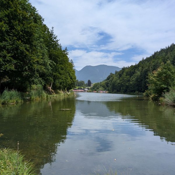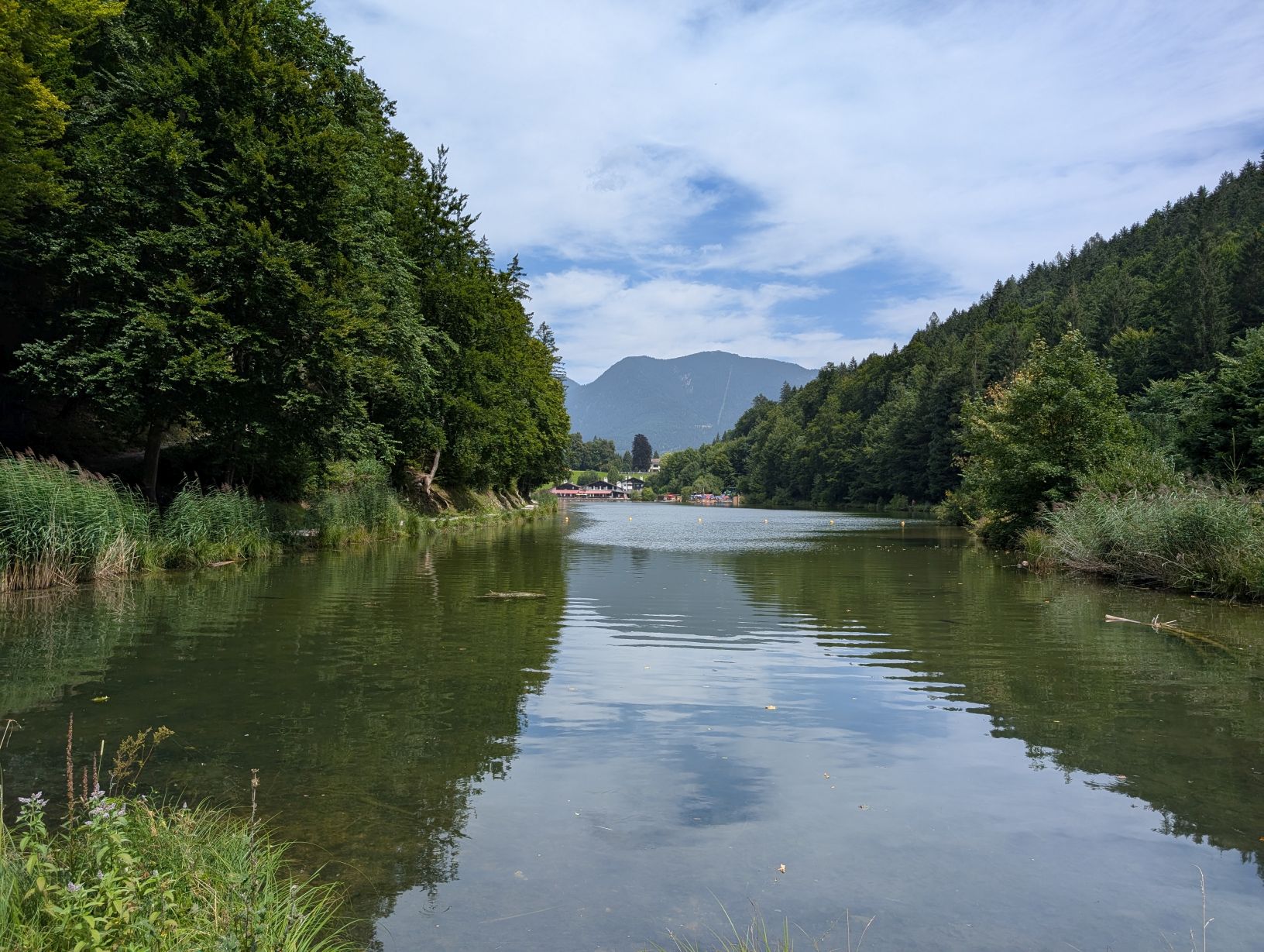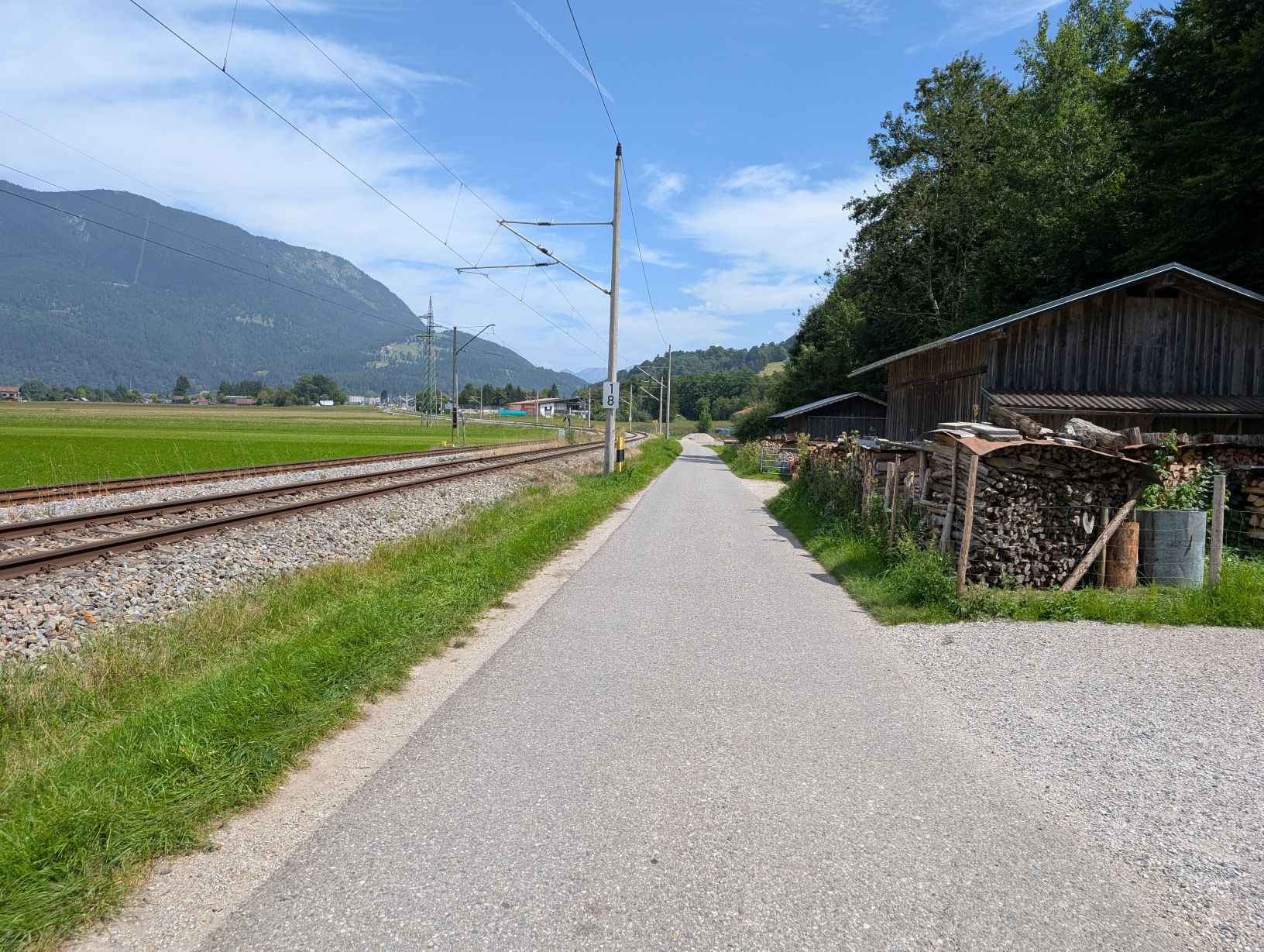 Vom Seeufer geht es schließlich das letzte Stück hinunter, bis man auf den Radlweg entlang der Bahngleise stößt. In knapp 10 Minuten kommt man über diesen zurück zum Parkplatz am Hausberg.