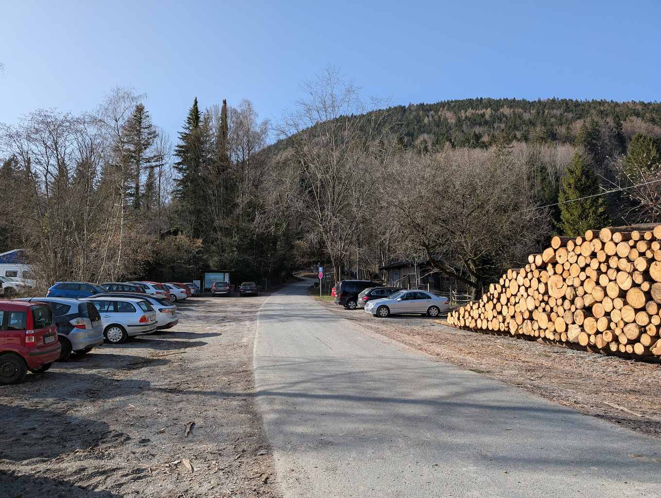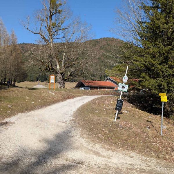 Vom kostenlosen Wanderparkplatz (so etwas gibt es tatsächlich noch) starten wir auf der Forststraße nach Westen. Es zieht direkt steil an. Am Kirchbach entlang erreichen wir auch schon bald die Schlipfgrubalm, die man zum Schluss gut für eine Einkehr nutzen könnte.