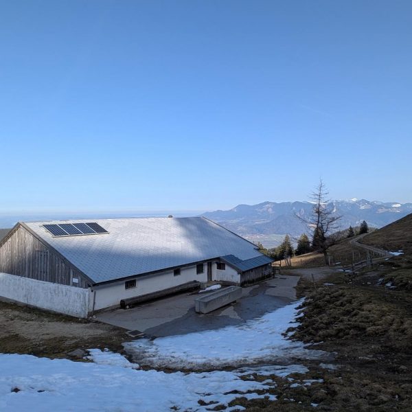 Brannenburg Parplatz Sagbruck (670 m) – Schuhbräualm (1.140 m) – Rampoldplatte (1.422 m) – (optional) Lechnerkopf (1.547 m) – Hochsalwand (1.625 m) – Lechneralm (1.250 m) – Schuhbräualm (1.140 m) – Retour auf der Auffahrtsroute
