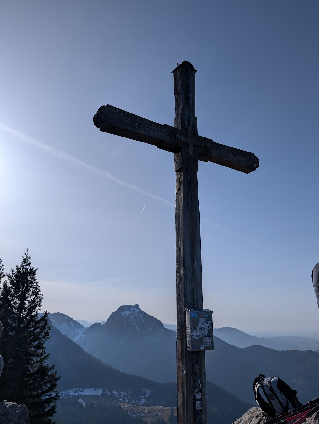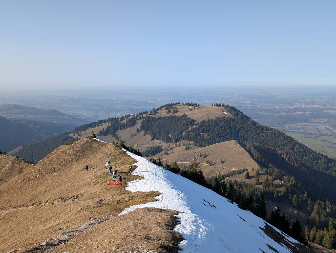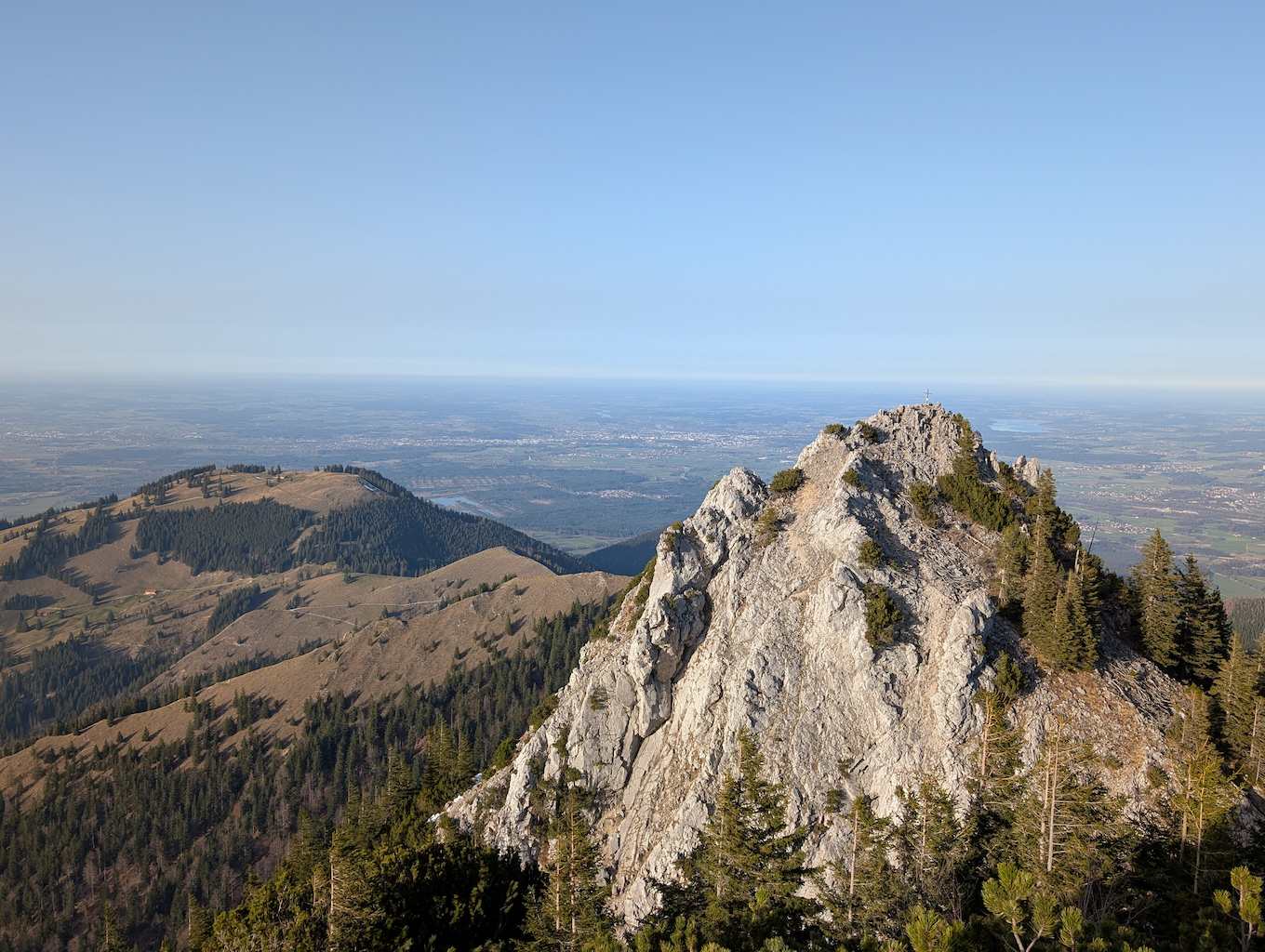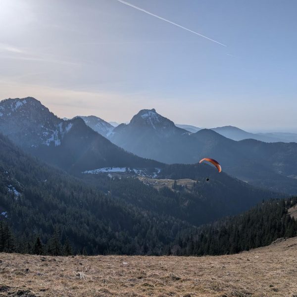 Schließlich ist es geschafft und die Hochsalwand (1.625 m) ist erreicht. Ein überragender Rundumblick bei untergehender Sonne vom Wendelstein bis weit in die Chiemgauer erwartet uns.