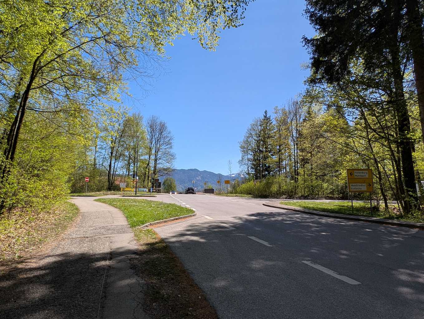 Mit dem Bike geht es direkt am Bahnhof Lenggries los. Ein Stück folgt man dem Weg parallel zur B13, bis es nach links zum Parkplatz Hohenburg abzweigt. An diesem angekommen, würde es nun geradeaus Richtung Hirschtalsattel gehen (Tourentipp: Kampen-Überschreitung). Hier gilt es allerdings, sich rechts zu halten („Mühlbach“).