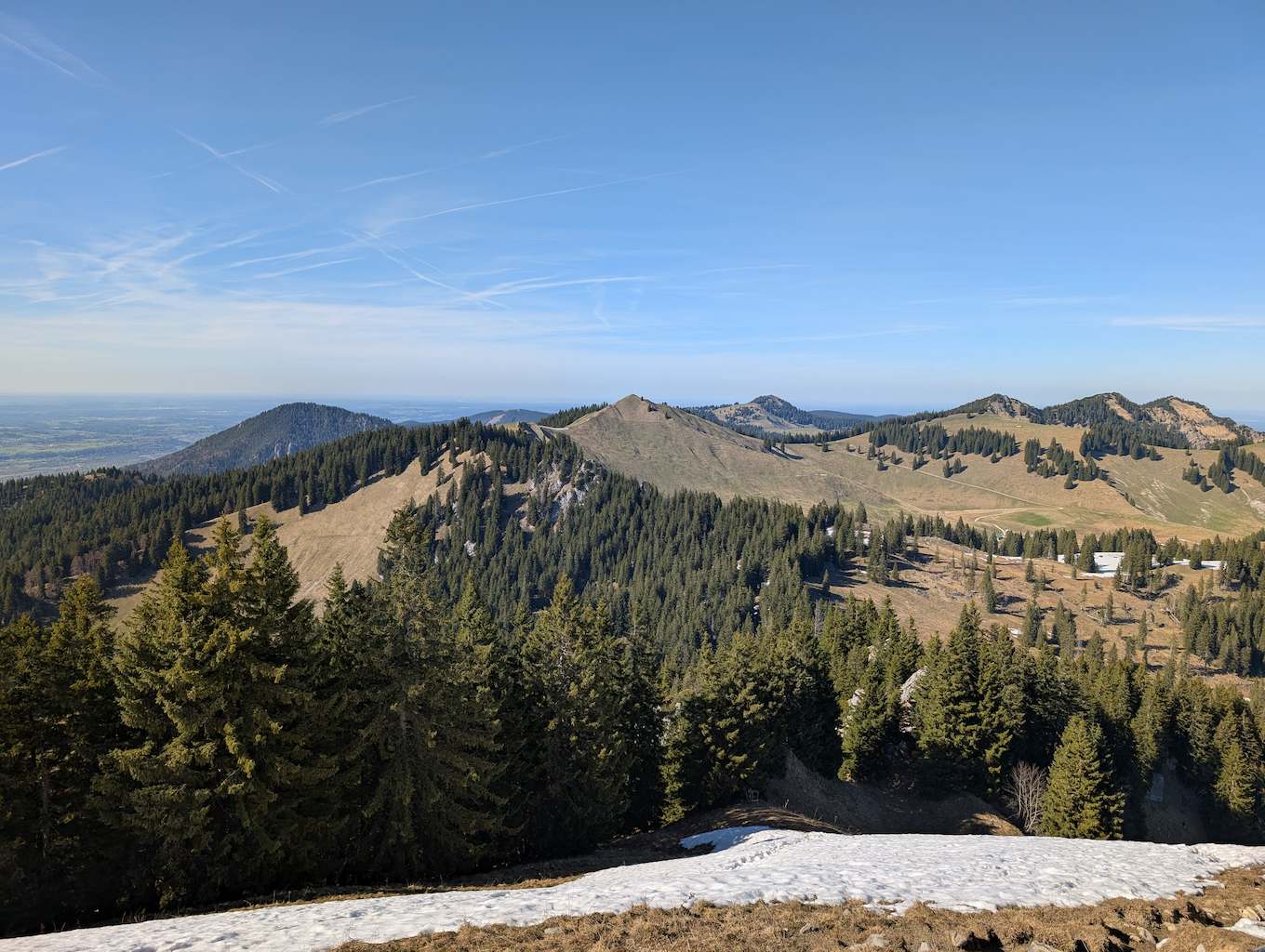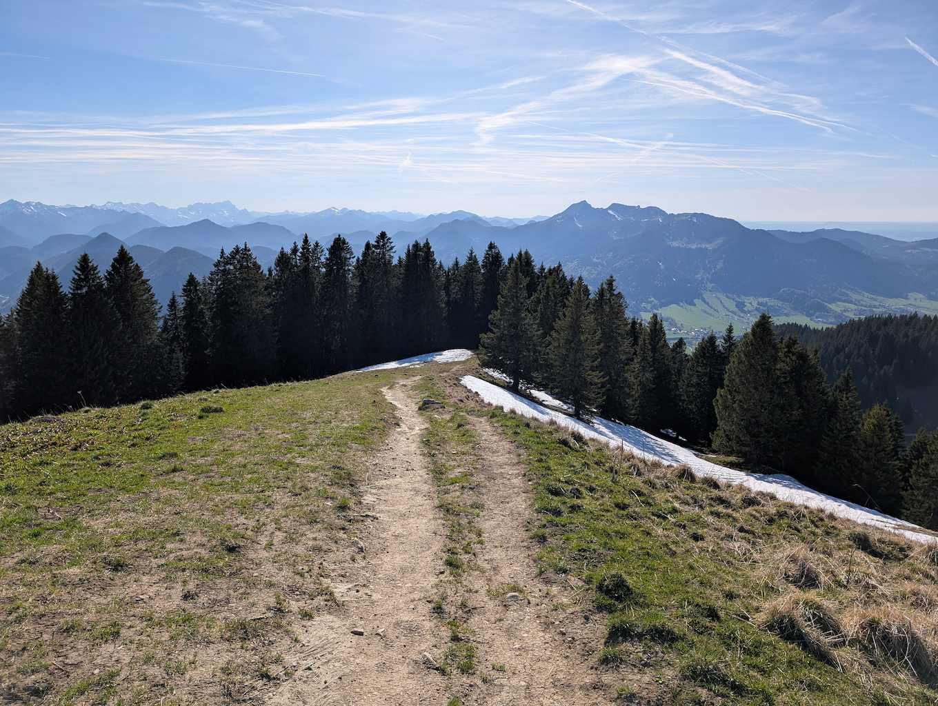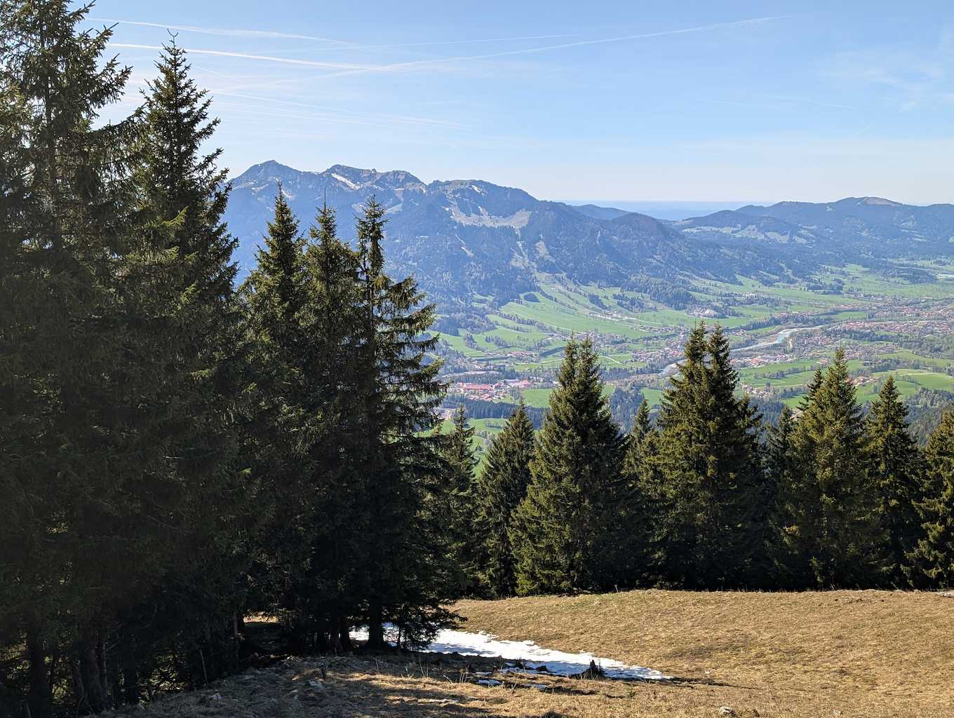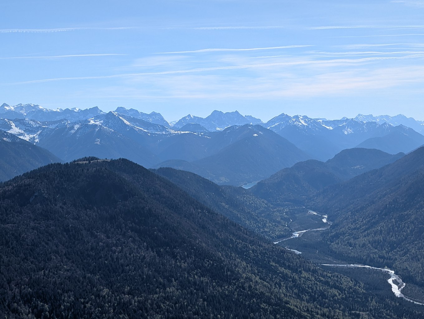 Der anstrengende Aufstieg hat sich gelohnt, denn man wird direkt und unvermittelt von einer fantastischen Aussicht empfangen, die das gesamte Karwendel und noch darüber hinaus umfasst. Für die Gipfelpause empfiehlt es sich, vom Kreuz noch ein Stück weiter bis zum höchsten Punkt des Schönbergs aufzusteigen!